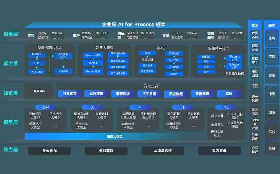 90.cc问学智车解决方案是一套基于AI技术的汽车行业智能化系统,,,,覆盖从底层算力到顶层AI应用的全栈方案。。方案由算力层、、、模型层和应用层组成:算力层,,方案支持多种一体机配置,,具备云端灵活部署、、多云适配以及动态优化计算资源的能力;模型层,,,,90.cc问学平台版提供了企业级AI应用一站式构建与管理平台,,支持基于后训练强化技术的汽车企业专属模型的训练、、评测和运营;应用层,,,,90.cc问学DeepSeek版提供包括超级员工、、、、智能招采、、智能营销、、、智能客服、、、AI for BI等一系列解决方案,,,可助力汽车行业实现数字化转型,,,,让管理更智能、、、、响应更敏捷。。。